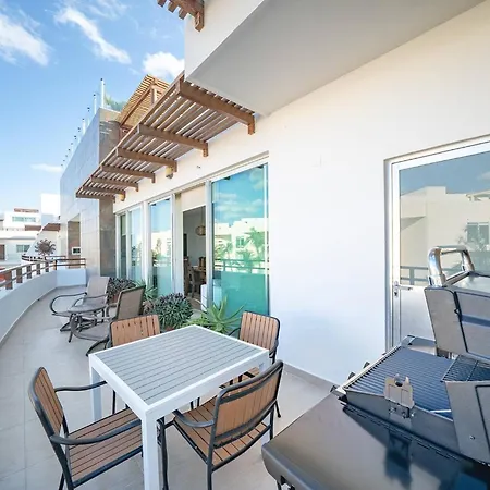 Penthouse Turquesa - Beachside - At Casa Del Mar ferielejlighed udstyret med et solarium, jacuzzi og en udendørs swimmingpool og ligger i Playa del Carmen, 1 km fra Punta Esmeralda Strand. Playa del Carmen centrum kan nås på en 20-minutters gåtur.